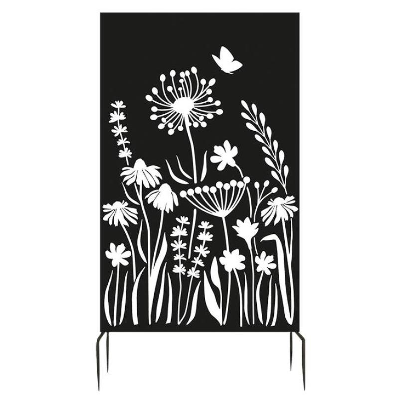 Metal Trellis Flowers Black 40" x 73"