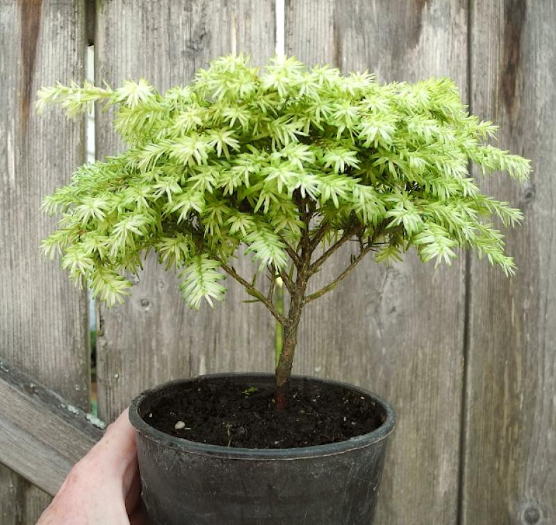 Bright, white, new growth with older, inner foliage that retains a light tone combine to give Tsuga canadensis ‘Moon Frost’ a distinctly white appearance. In winter, foliage of the seedling, developed by Ed Wood, takes on a blush of pink. A compact globe when young, ‘Moon Frost’ broadens and increases its growth rate with age, but remains a reliably small, dwarf plant.