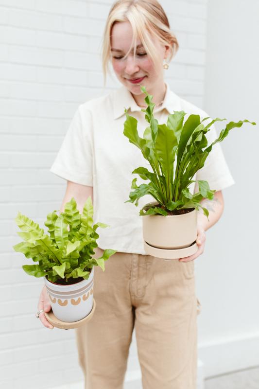 Its thick, waxy leaves not only make it more adaptable to indoor environments than delicate fern varieties but also enhance its ability to purify the air. The bright green, undulating fronds grow in a nest-like rosette, adding texture and vibrancy to any space.