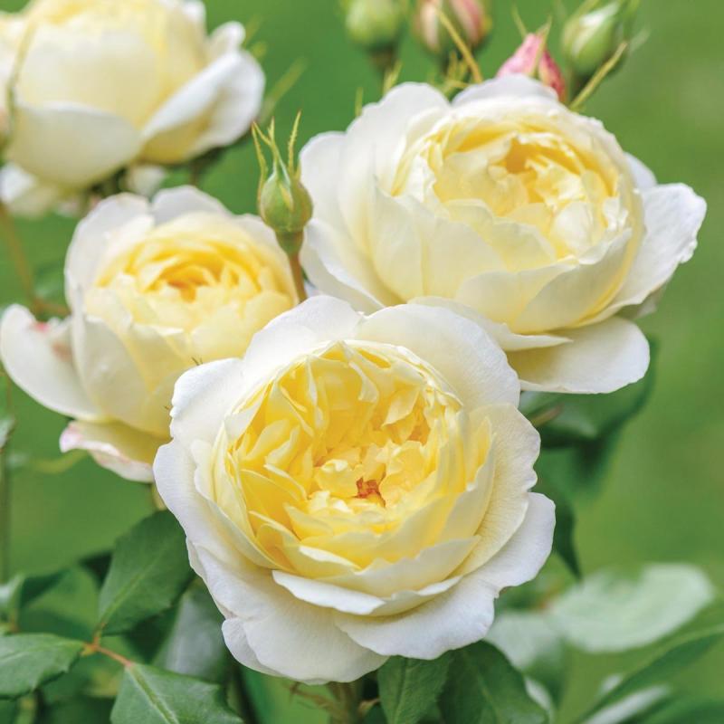 English Rose 'Charles Darwin' has very full flowers, some of the largest to be found in Austin's English Roses. They are a lovely shade of rich yellow -- almost old gold -- that fades to a lemon color. The flowers are rounded at first, then open to a shallow cup. The attractive bush is very healthy and hardy, perfect for the front of a garden border. The fragrance is strong and delicious, varying between a soft floral Tea Rose scent and almost pure lemon, according to the weather conditions. (David Austin 2001, Auspeet).