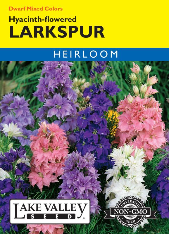 Dennis' 7 Dees - Seed Flower Lv Larkspur Hyacinth-flowered Dwarf Mixed Colors Hei Packet