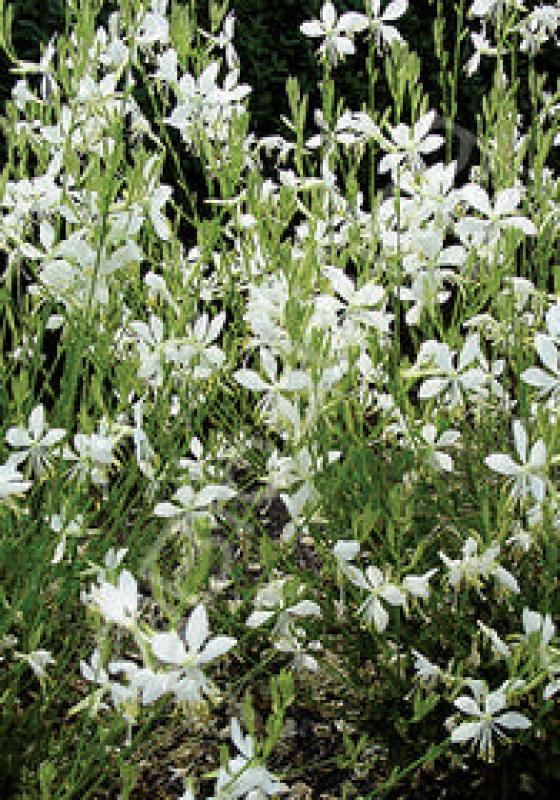 Profuse, pure white flowers bloom along 18" stems summer to fall, creating an effect that is bright, light, clean and airy. Butterflies love Gauras! Disease resistant variety.