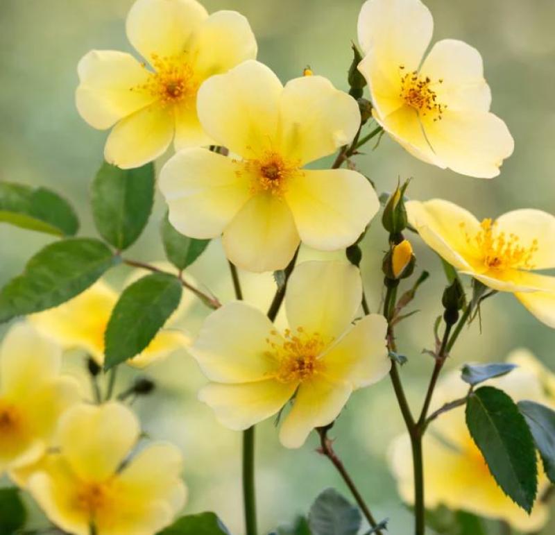 ‘Tottering-by-Gently’ finds its charm in simplicity. This cheerful English shrub rose produces masses of single, butter-yellow blooms held in open sprays that light up the garden with a relaxed, informal beauty. With just five petals per flower and a light-to-medium musk fragrance, it brings a whimsical and naturalistic feel to borders, hedges, or pollinator gardens.