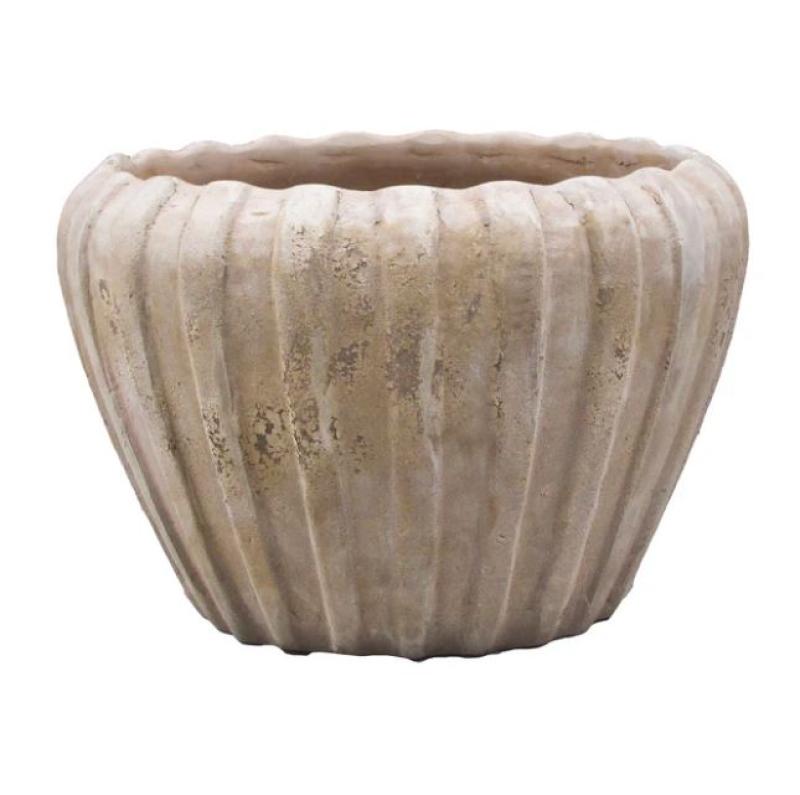 Planter Round Ribbed Antique White
