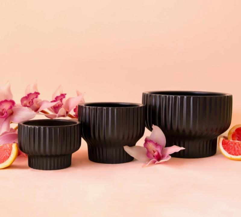 Presley Pedestal Pot Black