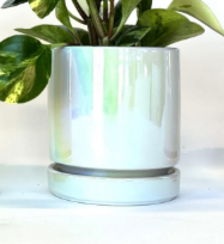 Cylinder Pot w/ Saucer Blue Pearl Momma Pots