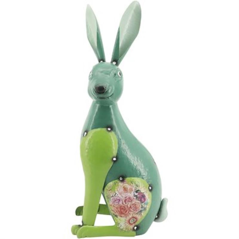 Dennis' 7 Dees - Colorful Metal Bunny Statue Continental Art Green