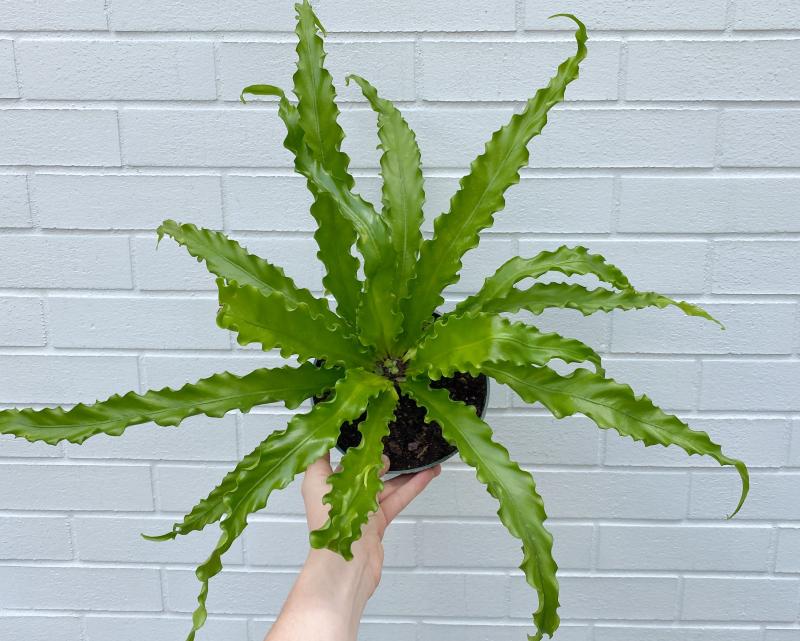Bird’s Nest Fern ‘Victoria’ (Asplenium nidus ‘Victoria’) is a hardy, beginner-friendly fern known for its distinctively ruffled, wavy fronds that create a lush, structured appearance.
