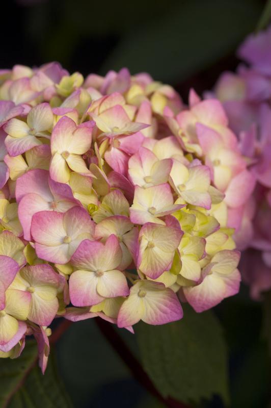BloomStruck®, part of the Endless Summer® Collection, is another breeding breakthrough. After 50 days below 0° F, and a low of -28° F, BloomStruck® flowered heavily the following spring on old growth and put out loads of blooms on new growth. In addition to being cold tolerant, BloomStruck's glossy dark green leaves are more heat resistant, which prevents wilting in mid-day heat. This reblooming mophead has rounded flowers averaging 3.5 - 5" across in intense rose-pink, violet or blue, depending on pH levels. Flower heads are held upright on striking ruby red stems, adding to this plant's retail presence.