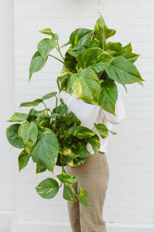 Pothos are quite possibly the easiest to care for (and easiest to come by) houseplant out there. They wilt when they are thirsty, tolerate many different light levels, and aren’t fussy about humidity.