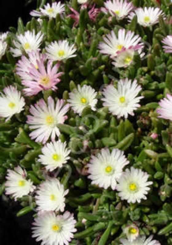 A profusion of small daisy-like flowers first open pink then fade to white, producing a bicolor effect almost non-stop all summer. This low growing mat of succulent gray-green leaves is very drought tolerant.